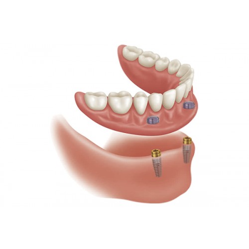 Removable prostheses on implants; It is the treatment that patients can remove whenever they wish, which is done to hold onto the implants placed in the mouth where all the teeth have been lost. The patient's discomfort is relieved by fixing the lower prosthesis on the implants applied especially to the lower jaw, in case of situations such as the dislocation of the full denture while eating and talking due to bone resorption in the toothless mouth.